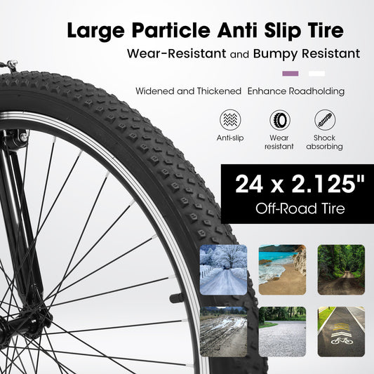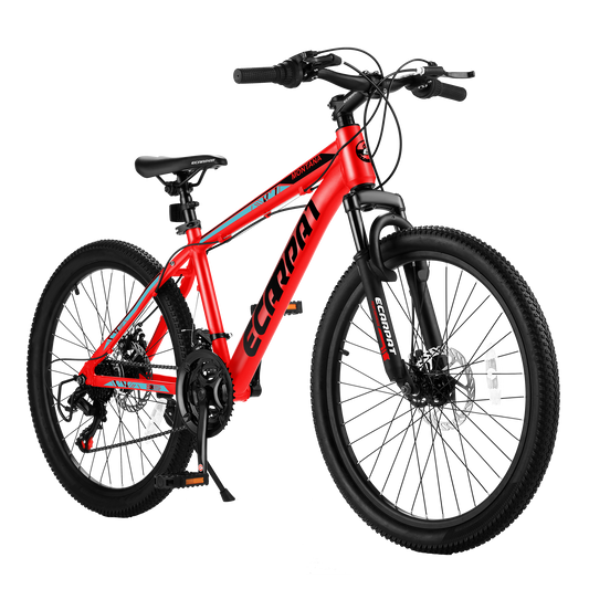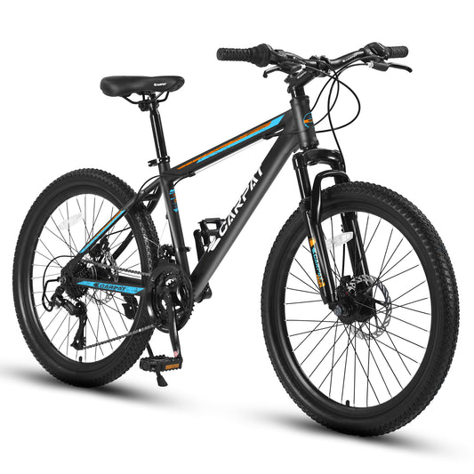Ecarpat 24 Inch Mountain Bike, Front Suspension Mens Mountain Bike with 21 Speeds High-Carbon Steel Frame and Disc Brakes, Adult Sport Bicycle for Trail Snow Commuter City Road