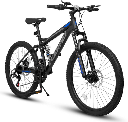 Ecarpat 24 Inch Mountain Bike, Dual/Front Suspension Mens Mountain Bike with 21 Speeds High-Carbon Steel Frame and Disc/V Brakes, Adult Sport Bicycle for Trail Snow Commuter City Road