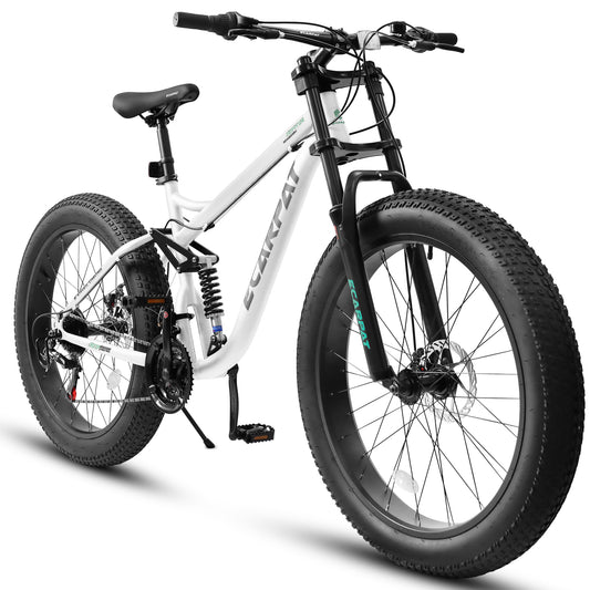 Ecarpat 26 Inch Fat Tire Mountain Bike, 21 Speeds High-Carbon Steel Frame Dual Disc Brakes MTB, Front/Full Suspension Mountain Bikes, Adult Men Women Bicycles Bikes