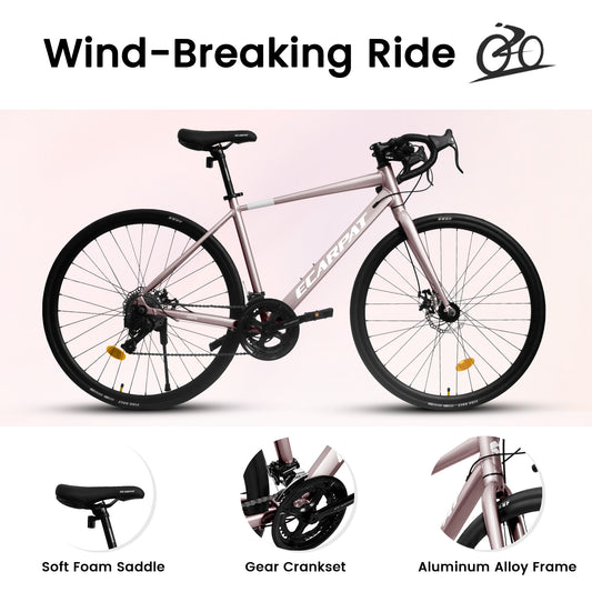 Ecarpat 700C Road Bike, 16-Speed Outdoor Bike Disc Brakes, Light Weight Aluminum Frame ,Racing Bike City Commuting Road Bicycle M Size